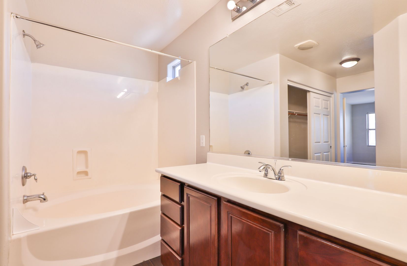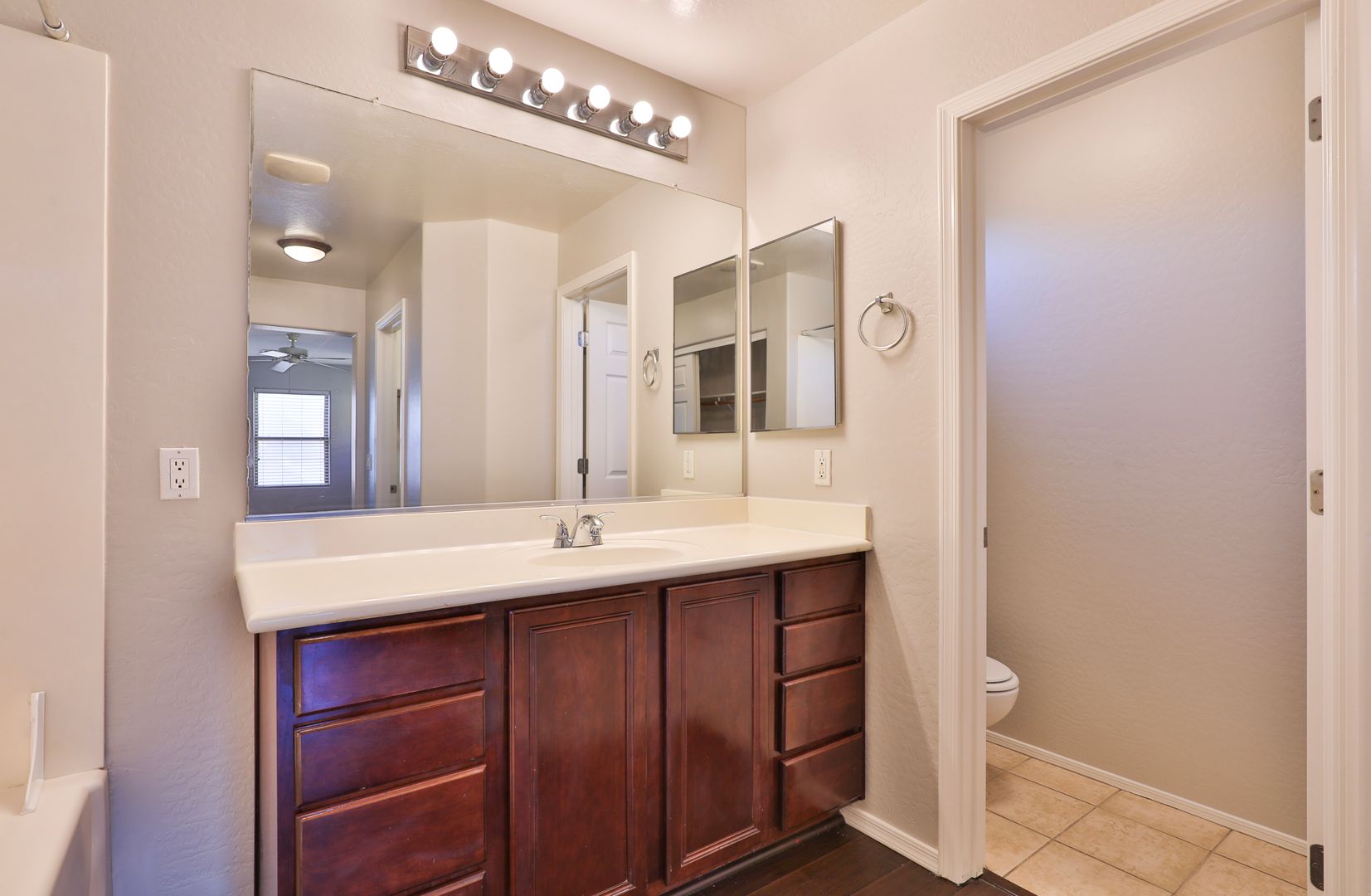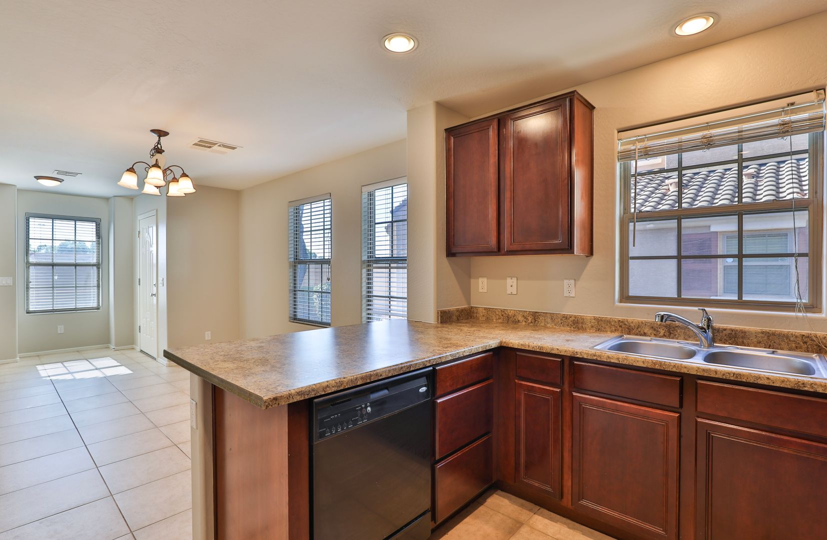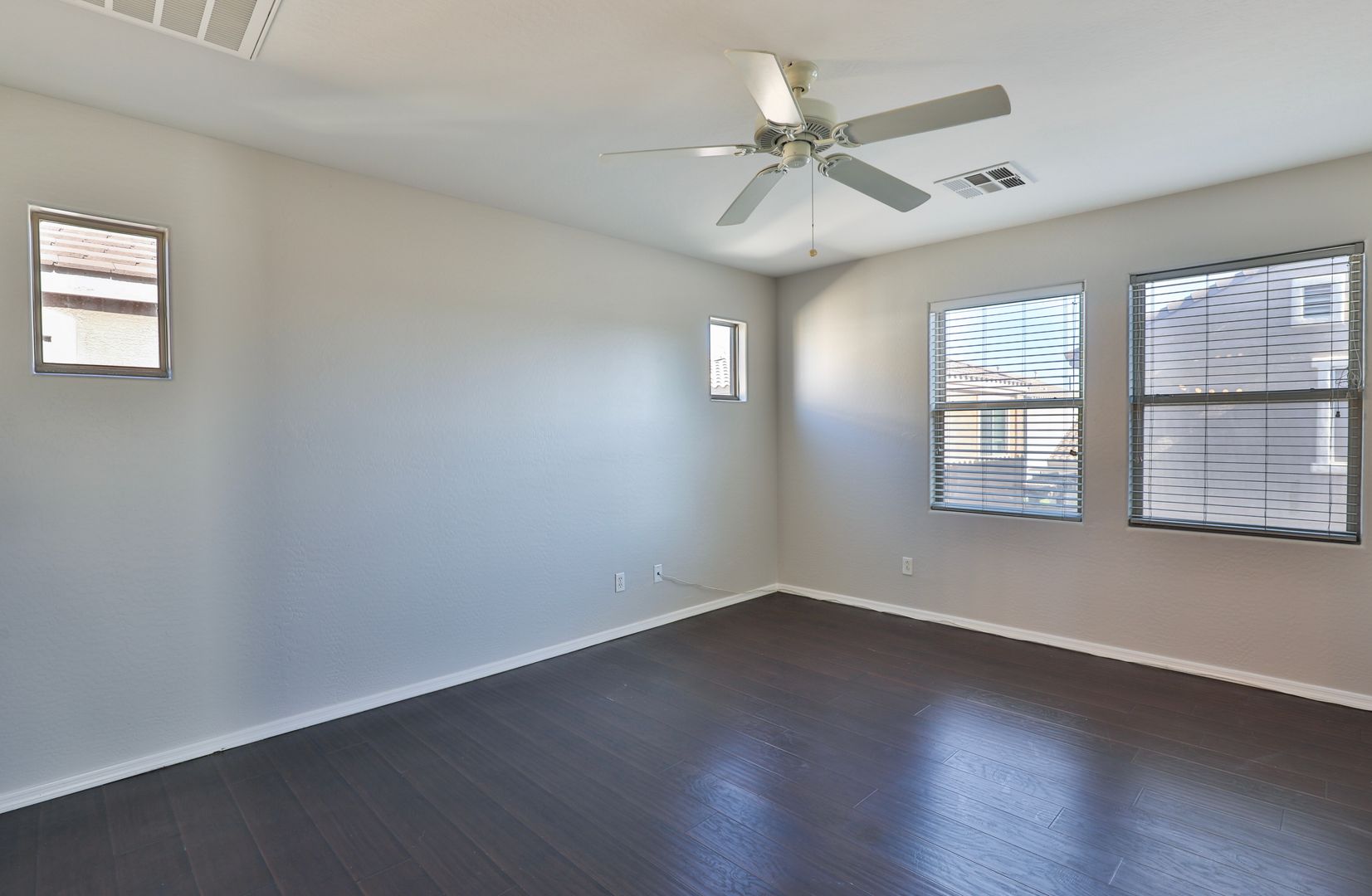 3 bedroom, 2.5 bathroom property in the popular Lyons Gate subdivision in Gilbert has a great interior featuring tile and wood laminate floors, spacious living and dining areas, and kitchen matching appliances, breakfast bar, pantry, recessed lighting, and refrigerator. The upstairs master bedroom has walk-in closet and regular closet, and immaculate full bath. The spare bedrooms are nice-sized and share full bathroom. The backyard is great for relaxing under the covered patio and has brick paved seating area for your entertaining needs and grassy area for kids and pets to play in. Community pool in subdivision. Home occupied through 5/4/2026, looking for a 5/22/2026 move in. Looking for 24 month lease.