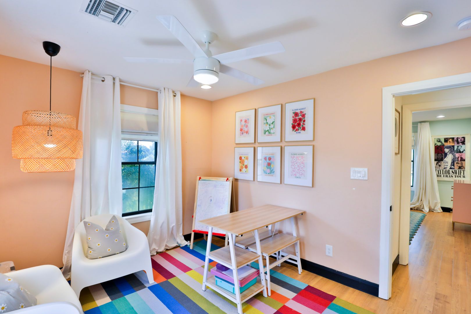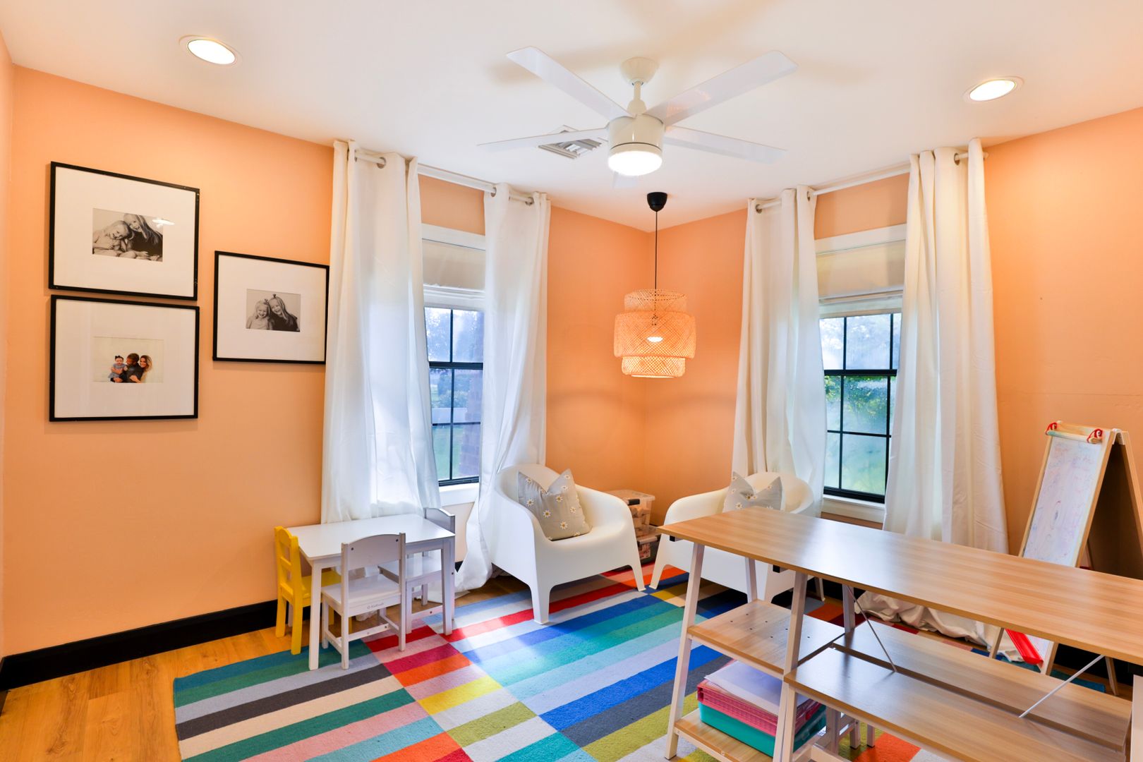 Brand new playground, and a separate treehouse. You are over 100 yards away from the nearest front door when you are in the backyard. Over 50 rosebushes at a variety of mature plants and vines. Landscaping included in the cost to rent.