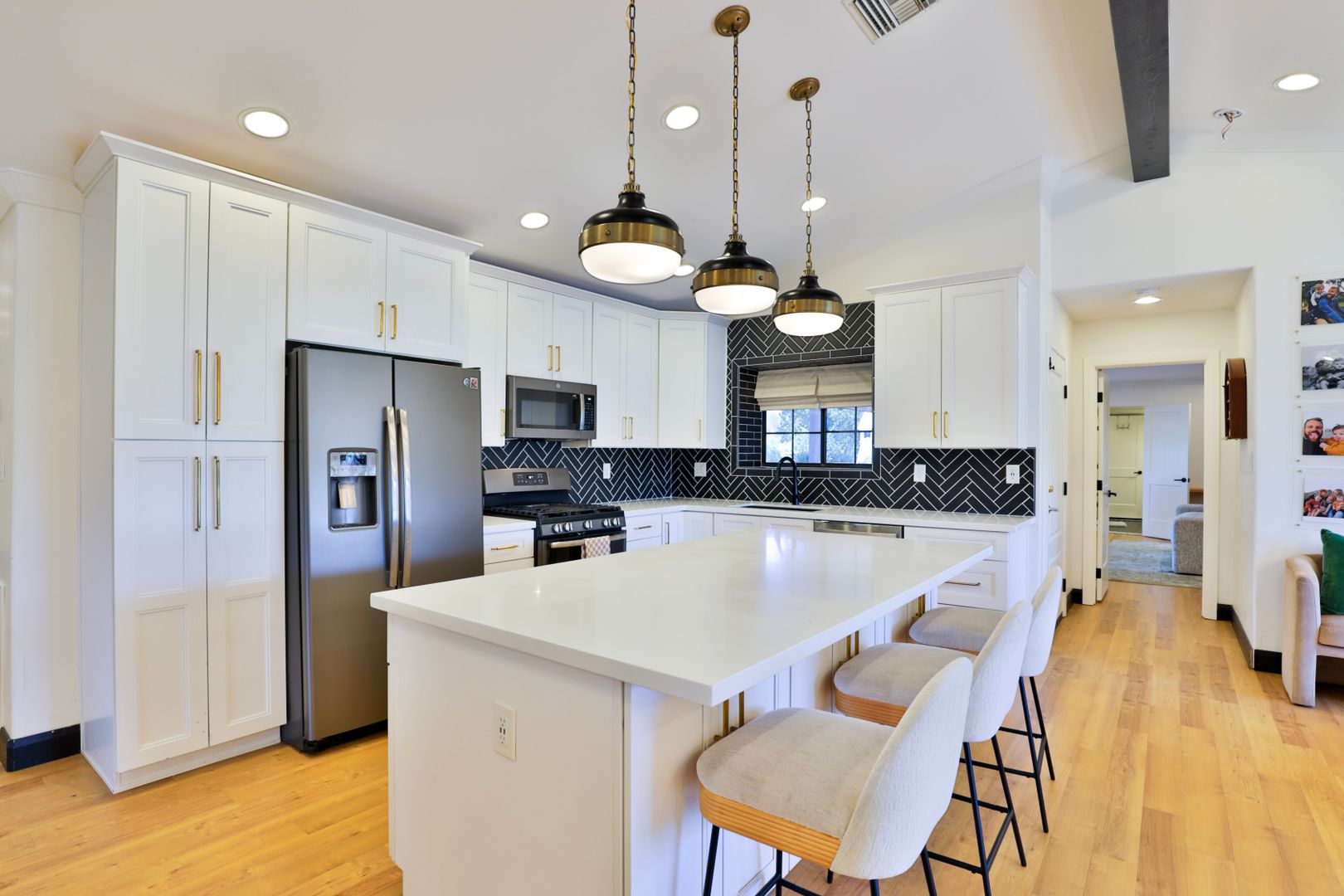 It is four bedroom three bathroom. Vaulted ceilings in the family room and kitchen. Owner is currently planting winter grass For the landscaping.