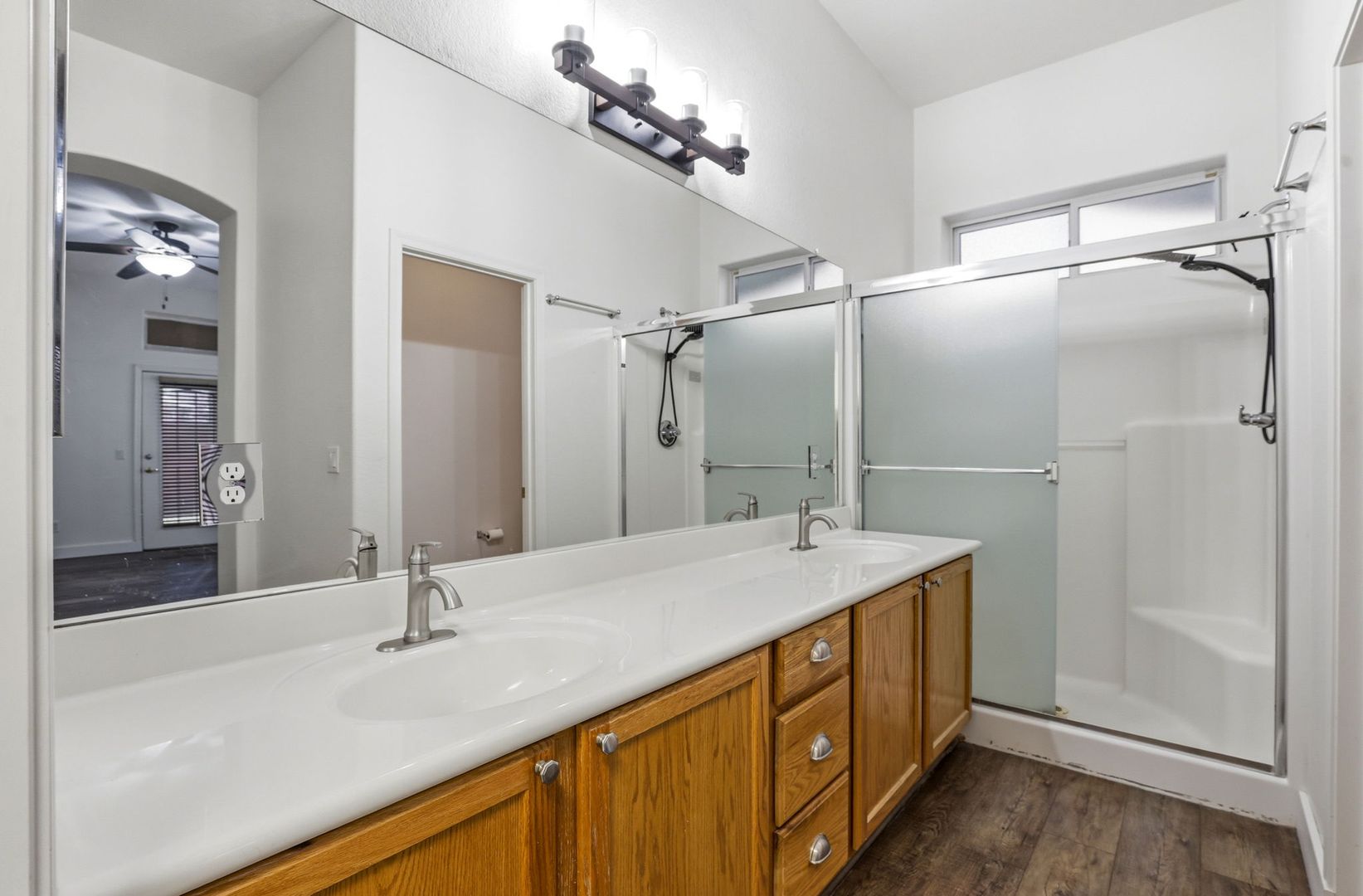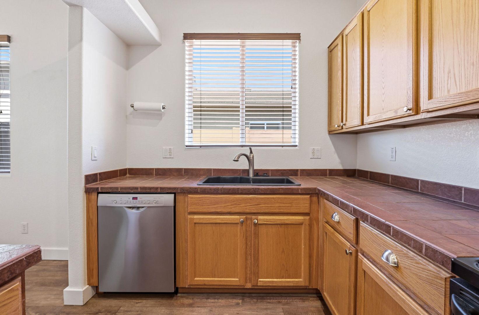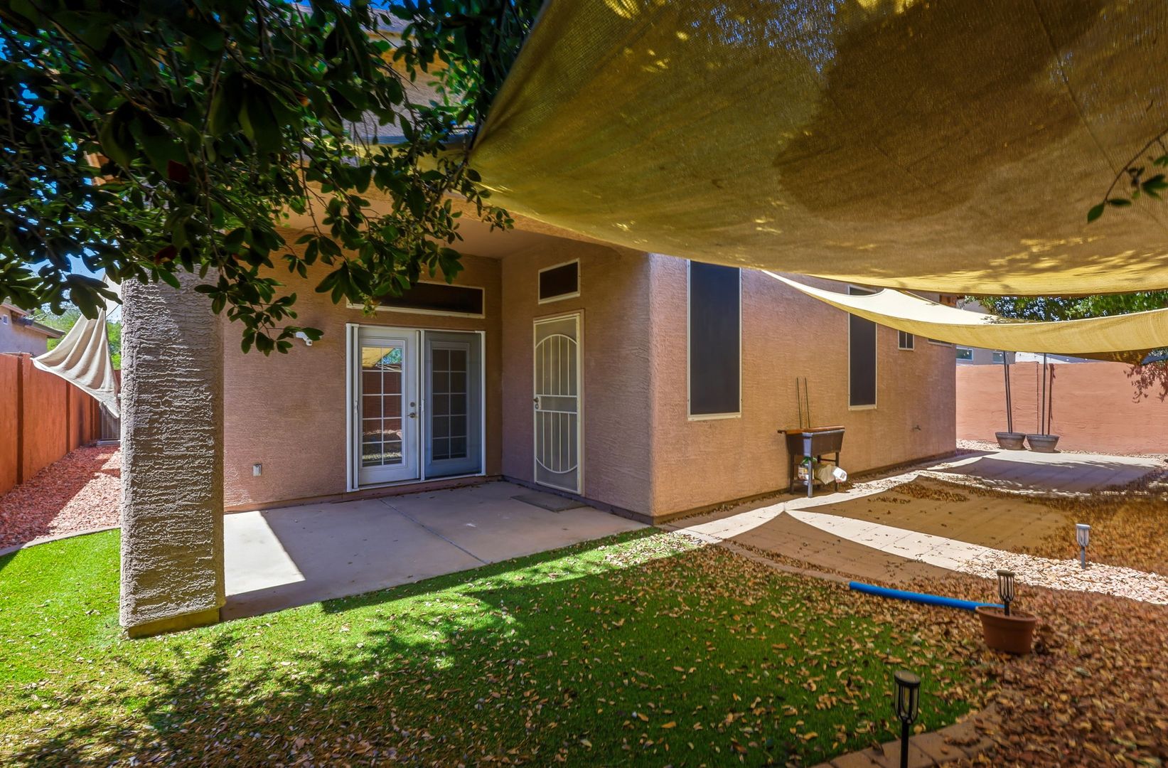 Small gated community near South Mountain with community park. 3/2 split floorplan home has LVP flooring throughout. Rock and artificial grass in backyard with shade sails for outdoor living. Pass-thru breakfast bar to dining area for entertaining.
