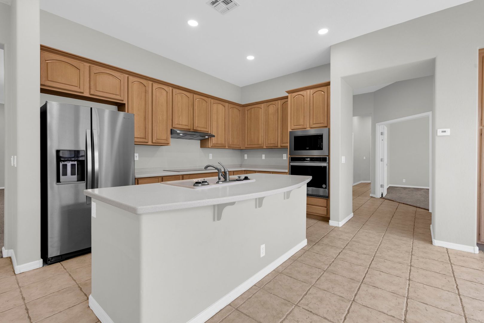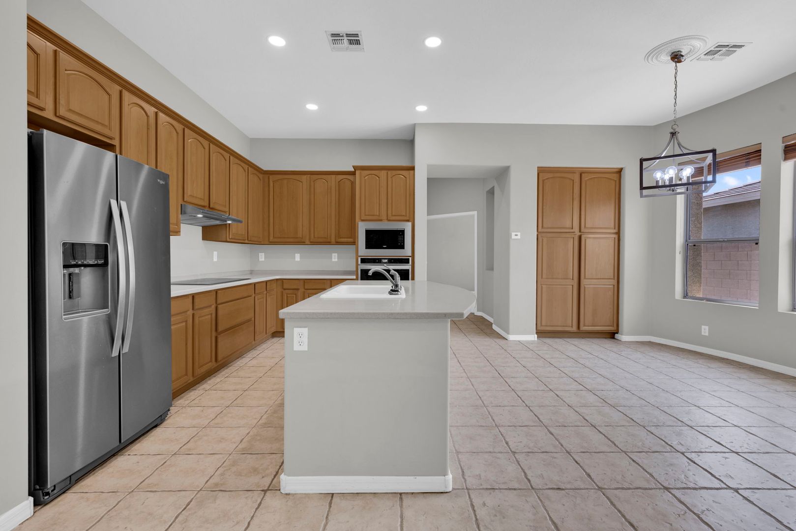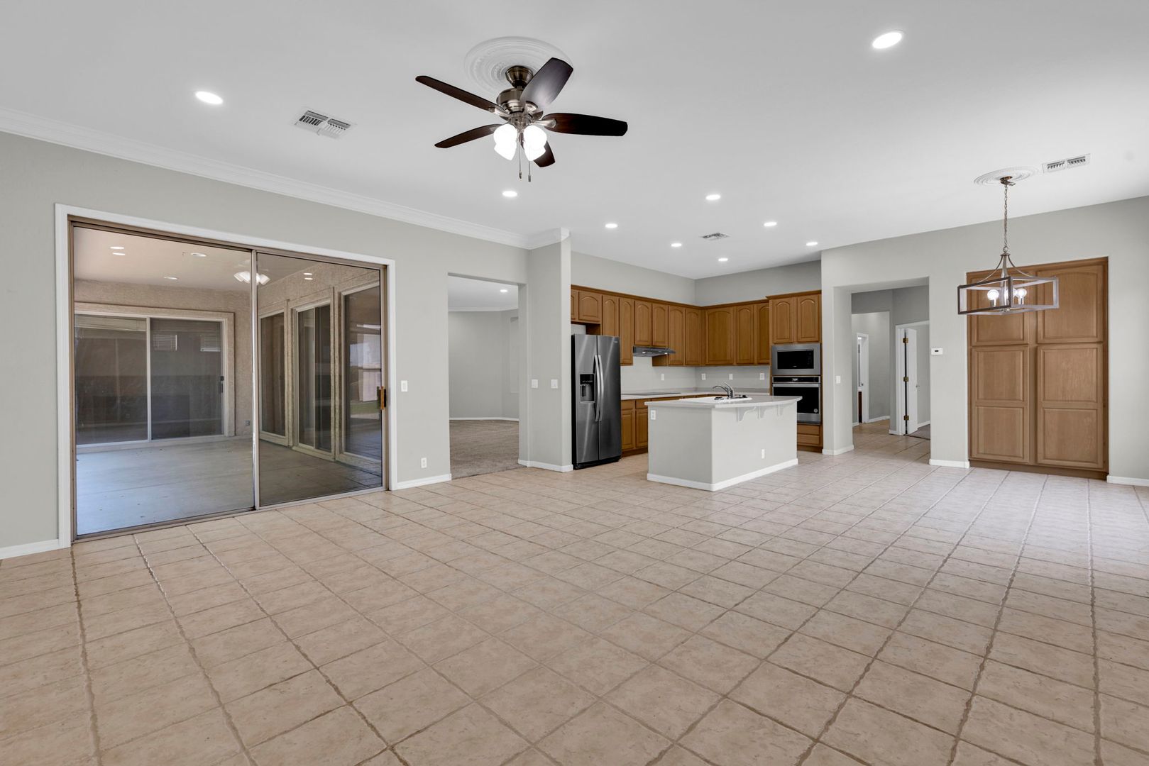 Do not miss your chance to live in this gorgeous 4 bedroom/ 2.5 bathroom home with three car garage in Mesa. Enter this spacious home and find separate formal living areas, two-tone paint, high ceilings, lots of natural light, and a cozy fireplace. The eat in kitchen comes complete with all appliances including refrigerator, upgraded countertops, a kitchen island with breakfast bar, and a pantry. The master suite includes a walk in closet plus a full master bathroom with dual sinks and separate tub/ shower. Step outside to a great covered patio and grass landscaping in both front and backyards. Brand new appliances and fixtures, great home! HOME OCCUPIED THROUGH 4/30/26, LOOKING FOR MID MAY MOVE IN.