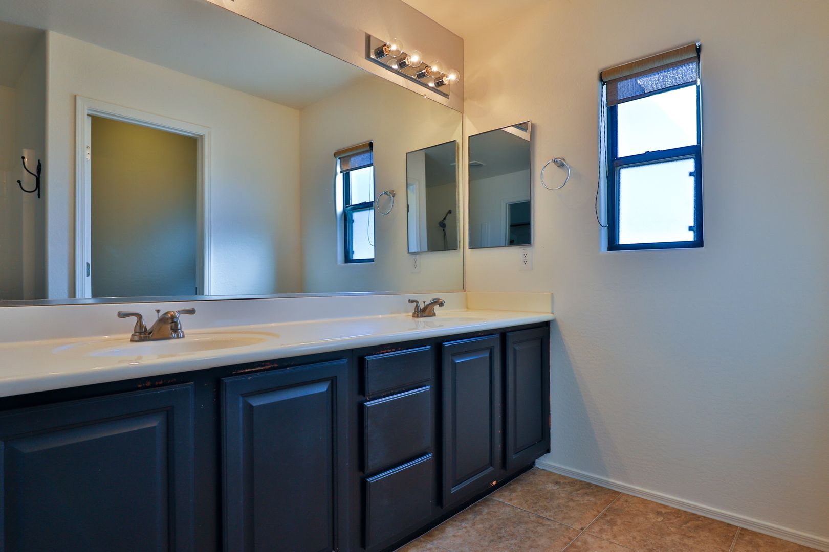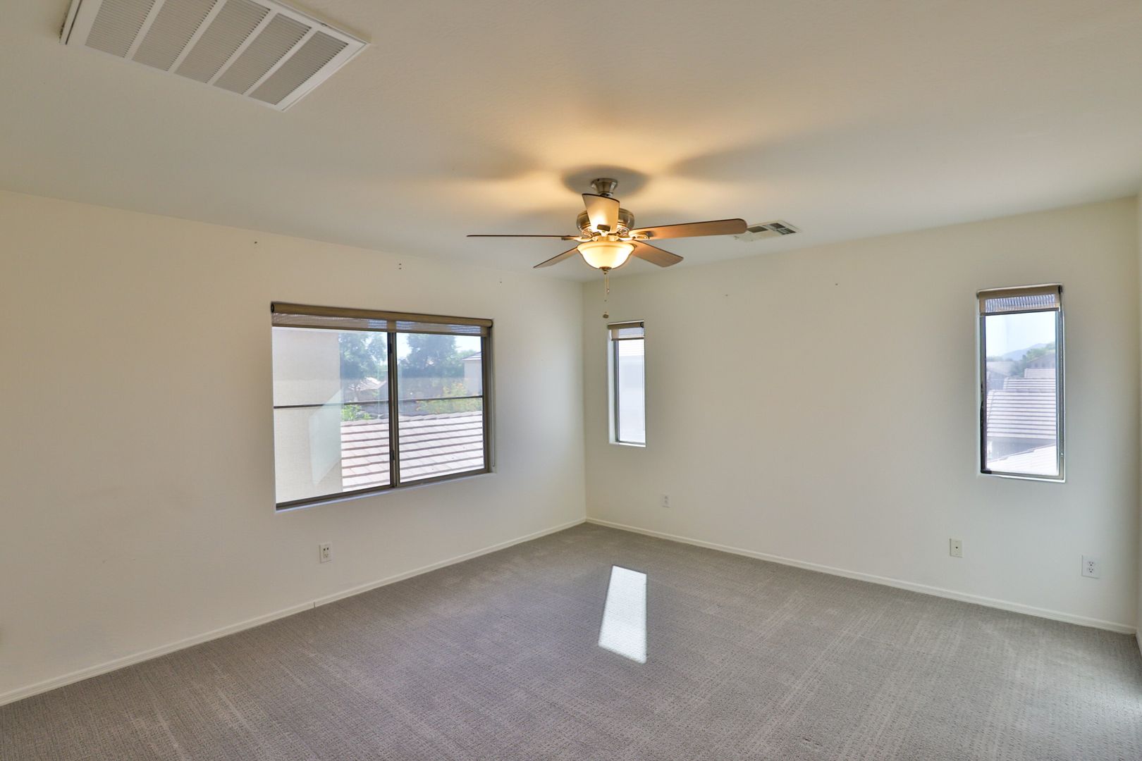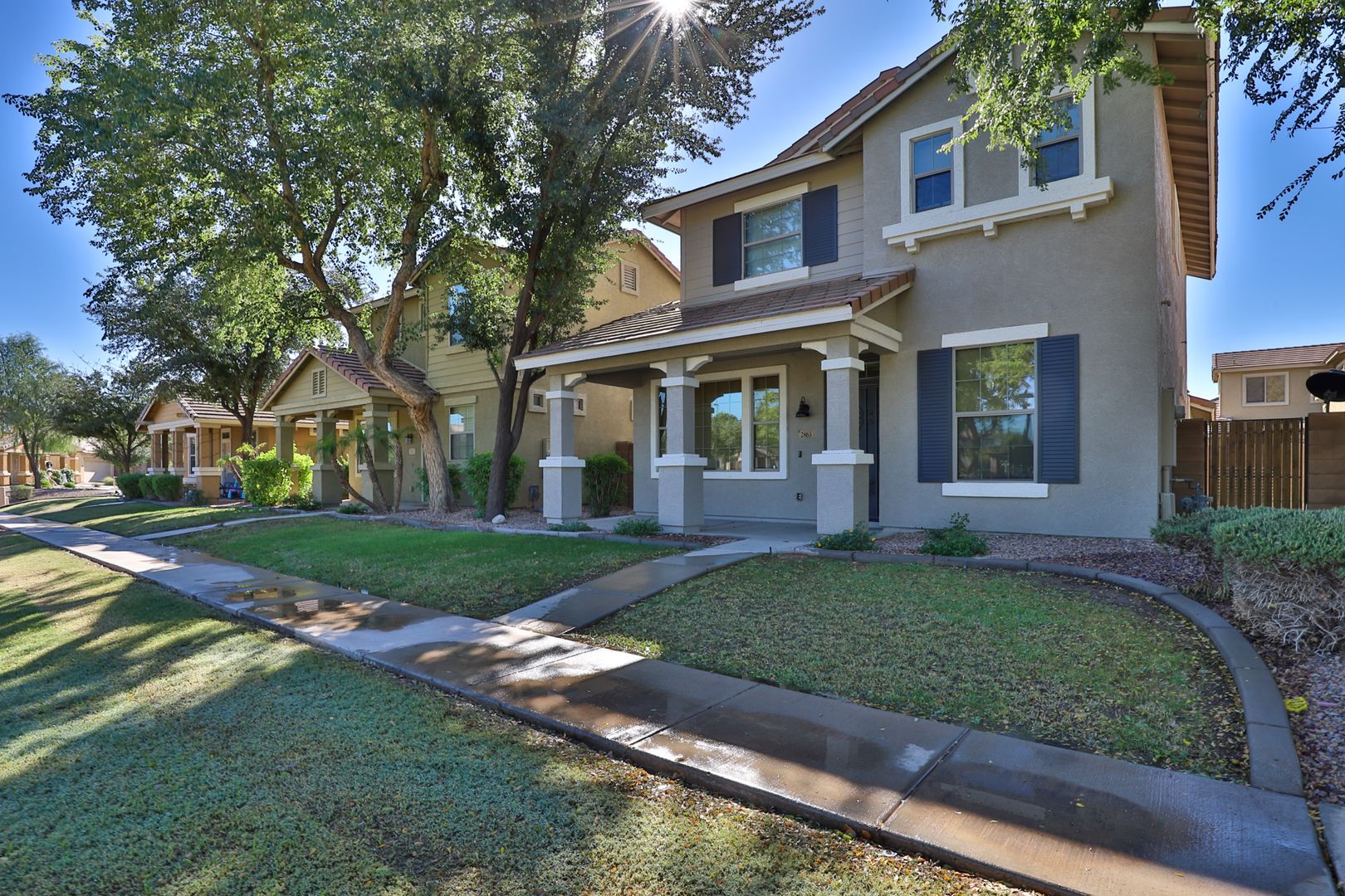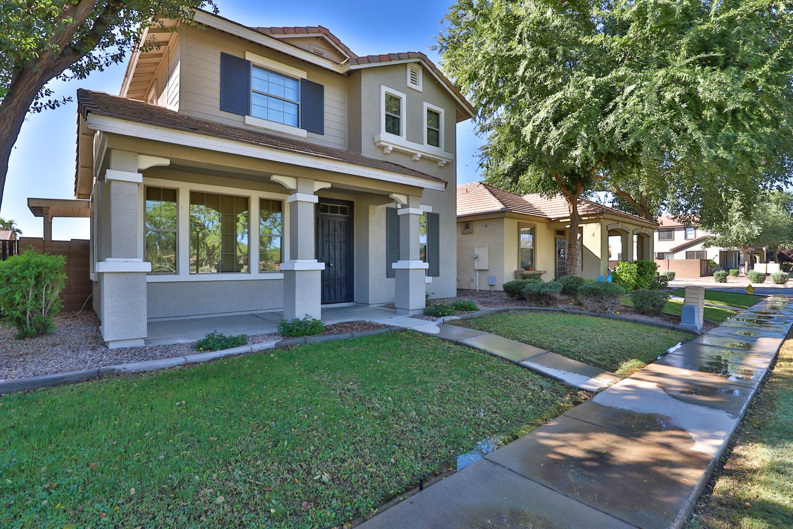 Do not miss this fantastic 4 bedroom / 3 bathroom home with a 2 car garage in Gilbert! This two-story home features tile and carpet flooring, high ceilings, ceiling fans, and window coverings. The kitchen comes complete with upgraded counters, a breakfast bar, a pantry, and appliances including a refrigerator, dishwasher, microwave, and range oven. Washer/dryer included. The primary bedroom features a walk-in closet, an attached bathroom with upgraded counters, and dual sinks. Enjoy a private fenced-in yard with a covered patio. This community features a refreshing a park with playground. Contact us to see this home today!