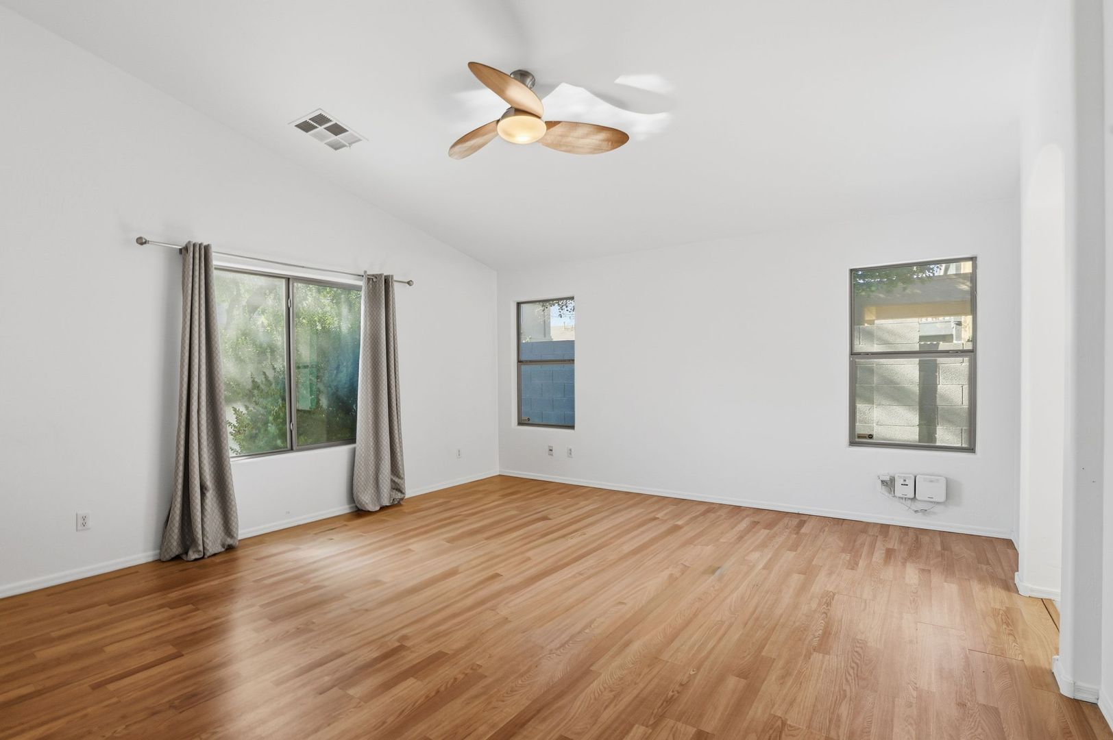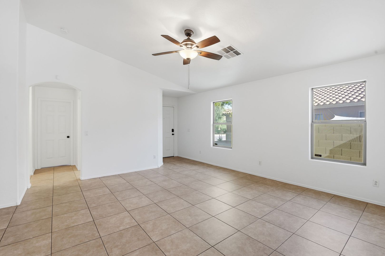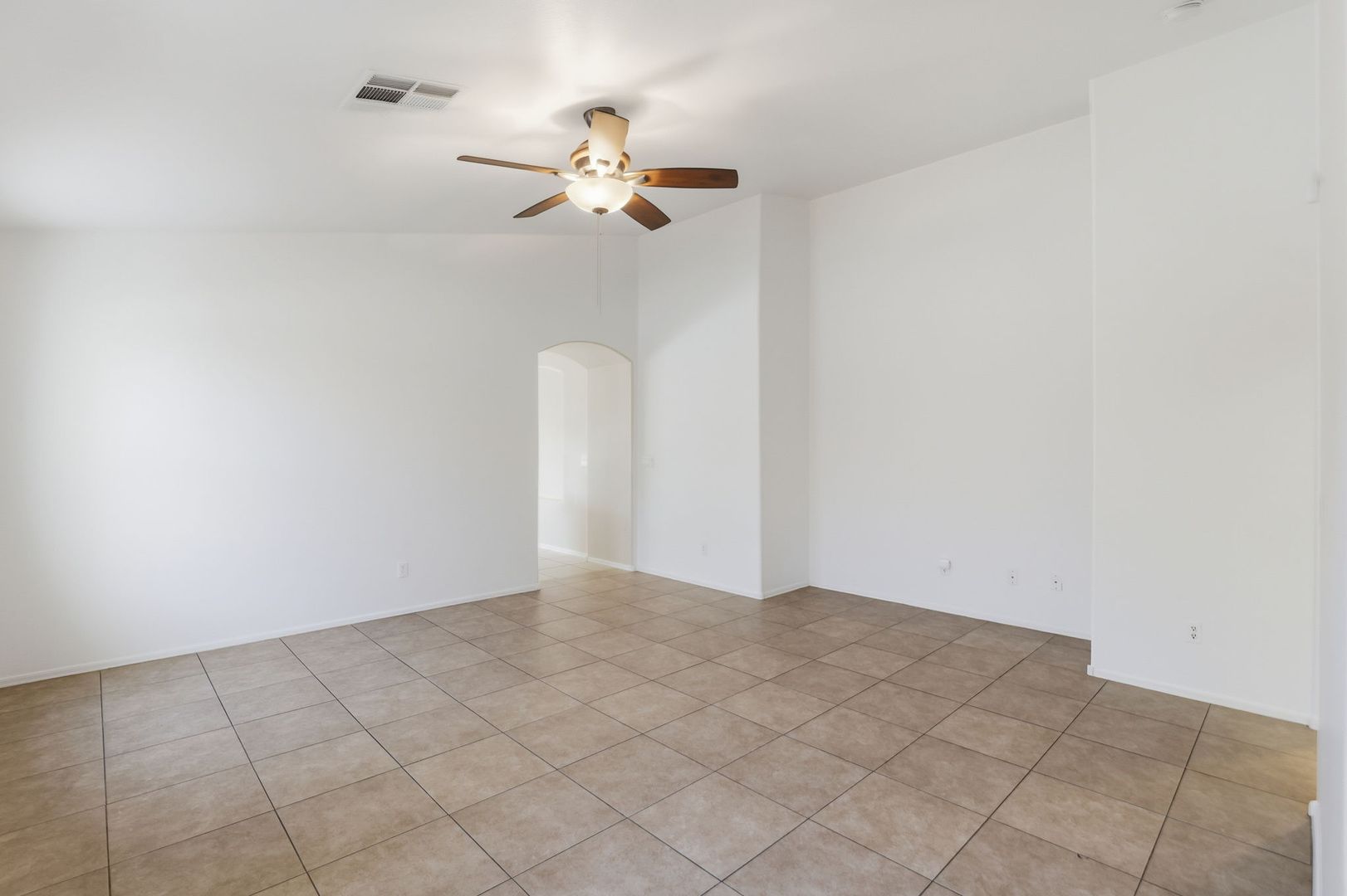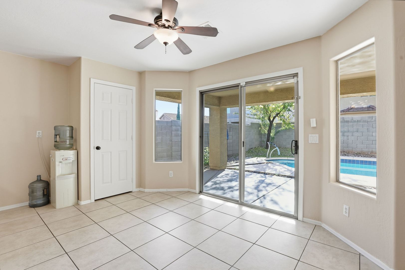 This charming 4 bed 2 bath home with a pool in San Tan Heights has everything you need! The kitchen features an island with a dishwasher, refrigerator, electric stove/oven, and plenty of cabinet space. The flooring throughout is tile, and the bedrooms are laminate. The master features double sinks and a walk-in closet. This home has been a very well cared for home. Come see today!