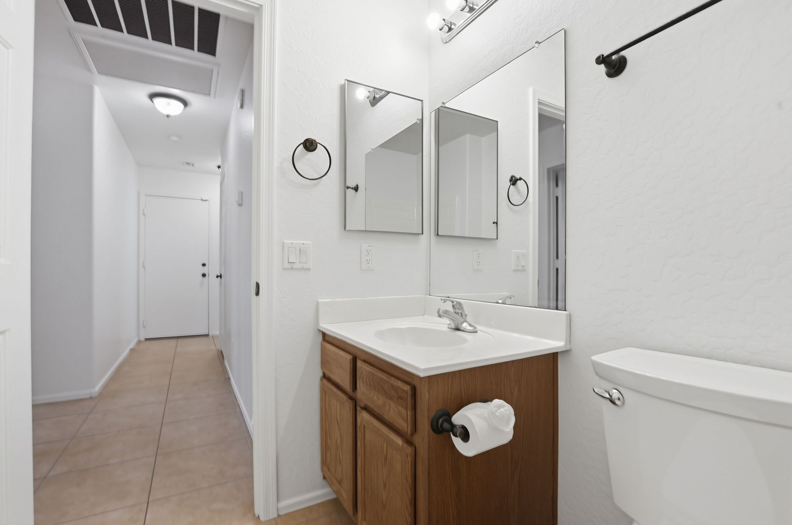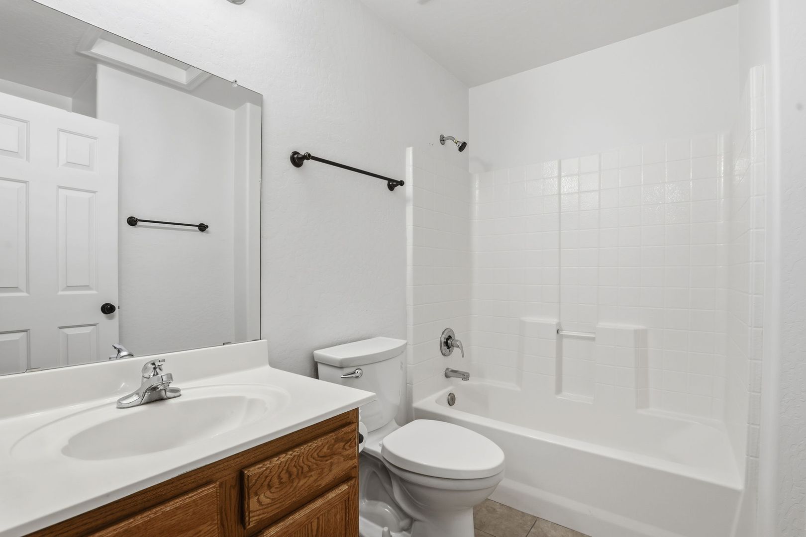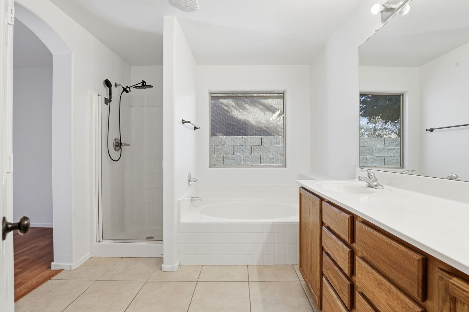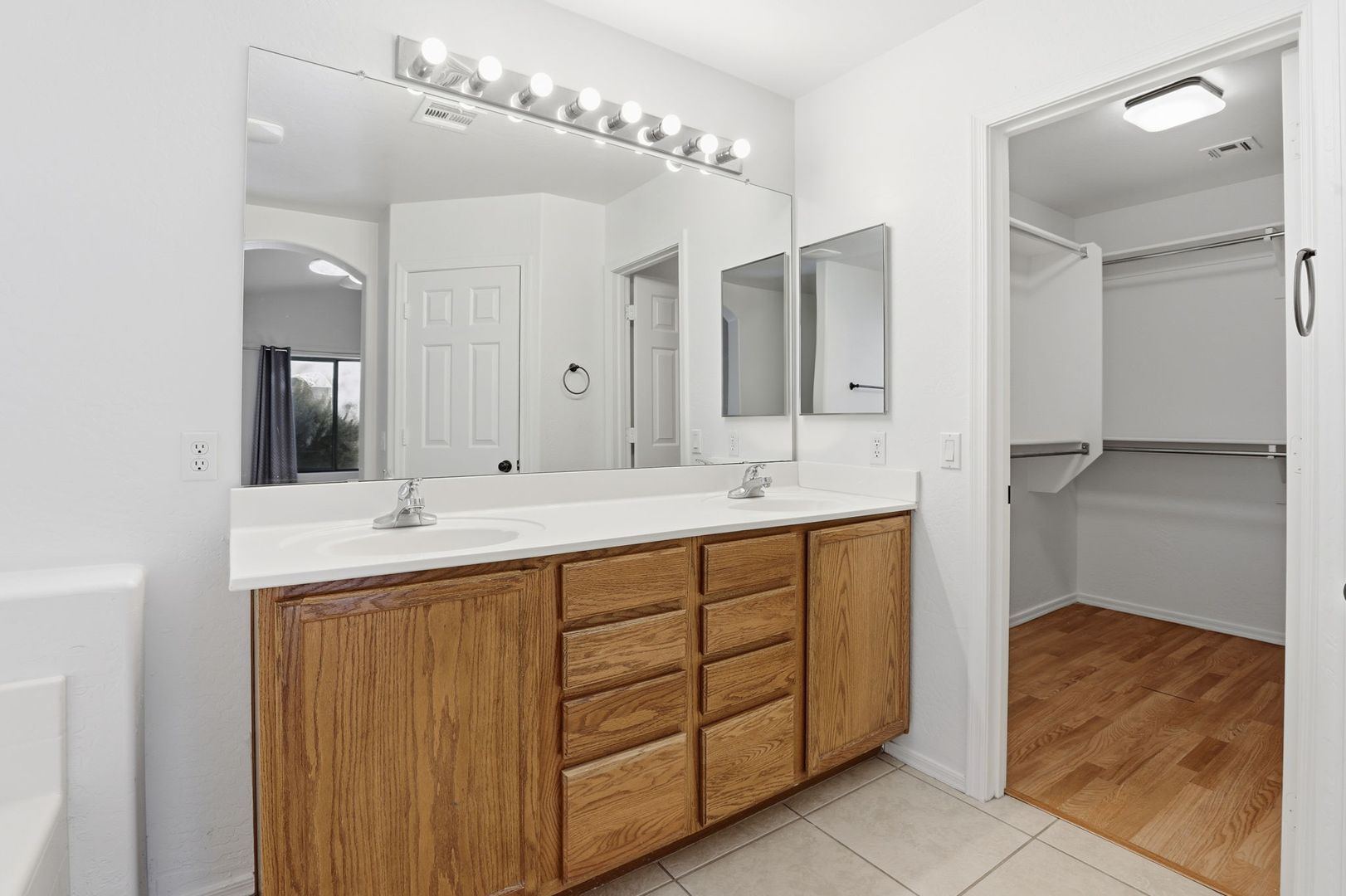 This charming 4 bed 2 bath home with a pool in San Tan Heights has everything you need! The kitchen features an island with a dishwasher, refrigerator, electric stove/oven, and plenty of cabinet space. The flooring throughout is tile, and the bedrooms are laminate. The master features double sinks and a walk-in closet. This home has been a very well cared for home. Come see today!
