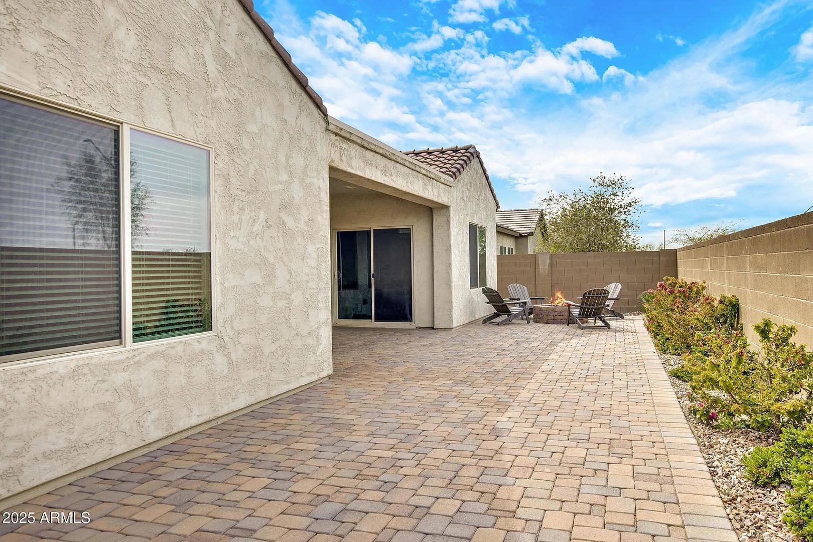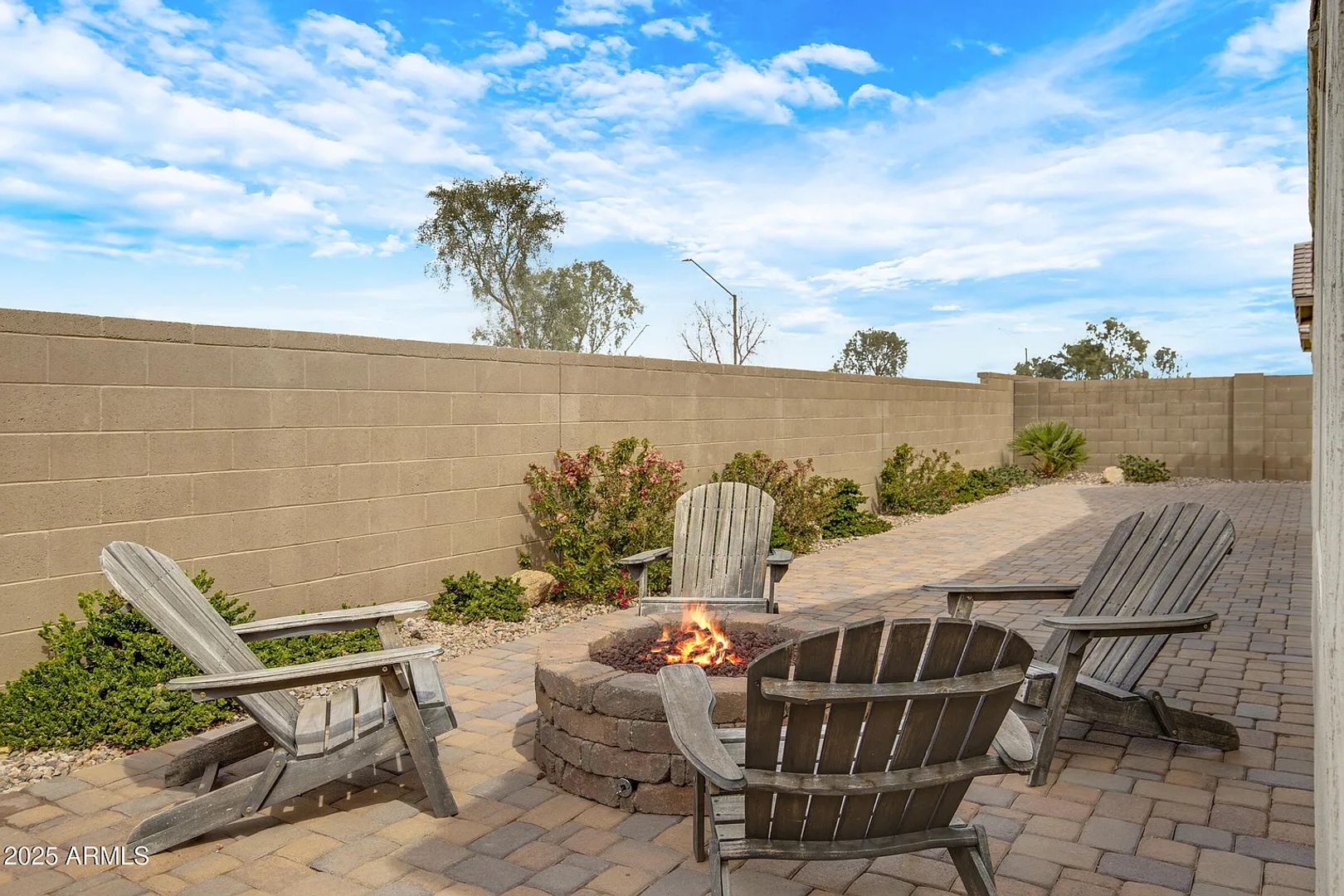 Out back, enjoy low-maintenance living with all-paver landscaping, an extended covered patio, and a built-in gas fire pitperfect for relaxing evenings under the stars. The side-entry 3-car garage provides ample storage and parking options.