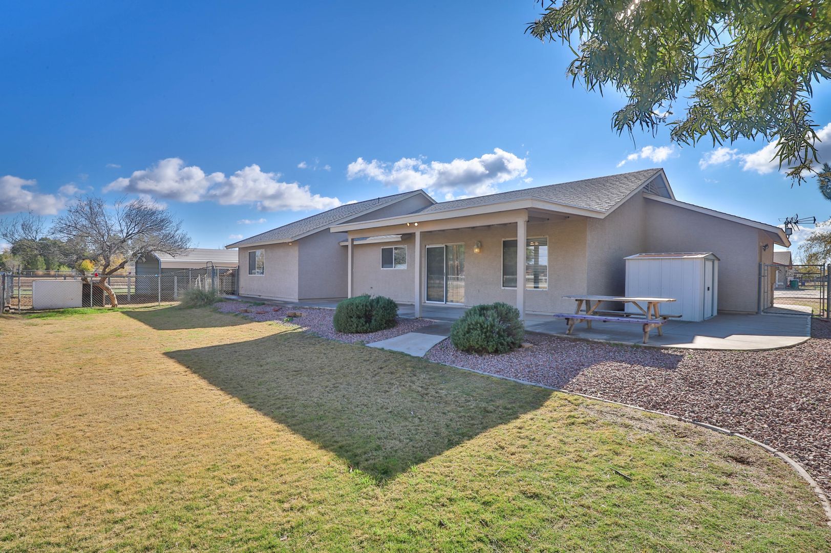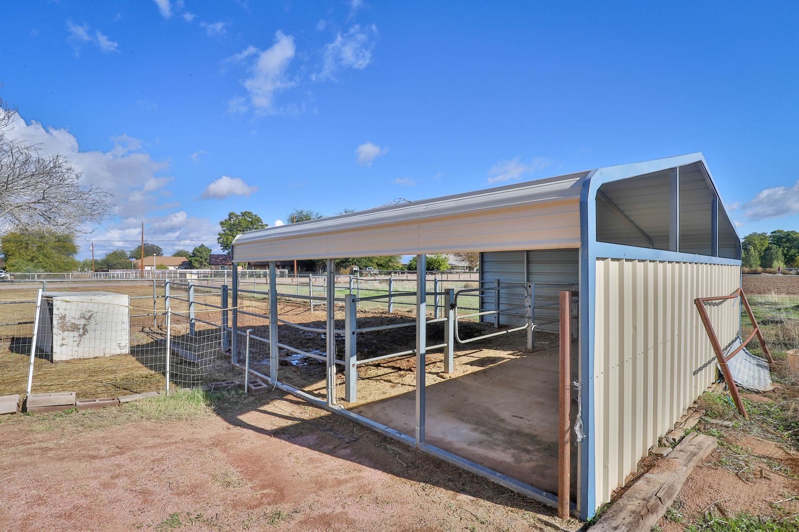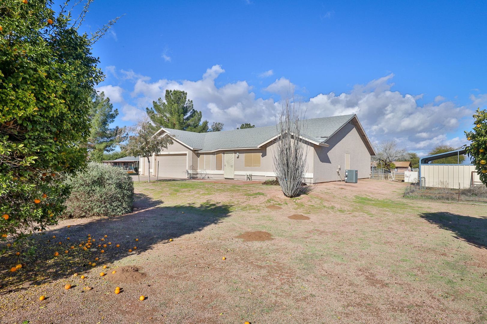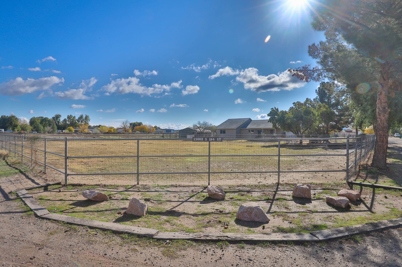 Come see this amazing 4 bedroom / 2 bathroom horse property with a three car garage! This home's interior features tile flooring, two-tone paint, ceiling fans, and vaulted ceilings. The kitchen comes complete with a pantry, breakfast bar, and stainless steel appliances including a stove/oven, refrigerator, dishwasher, and microwave! The master bedroom includes a walk-in closet and a private bathroom with a shower/tub combo. Enjoy sunny Arizona in your private fenced-in backyard with a covered patio, and desert and grass landscaping. This horse property includes acreage and horse stables. Also located near the loop 202 freeway. Contact us to see this home today!