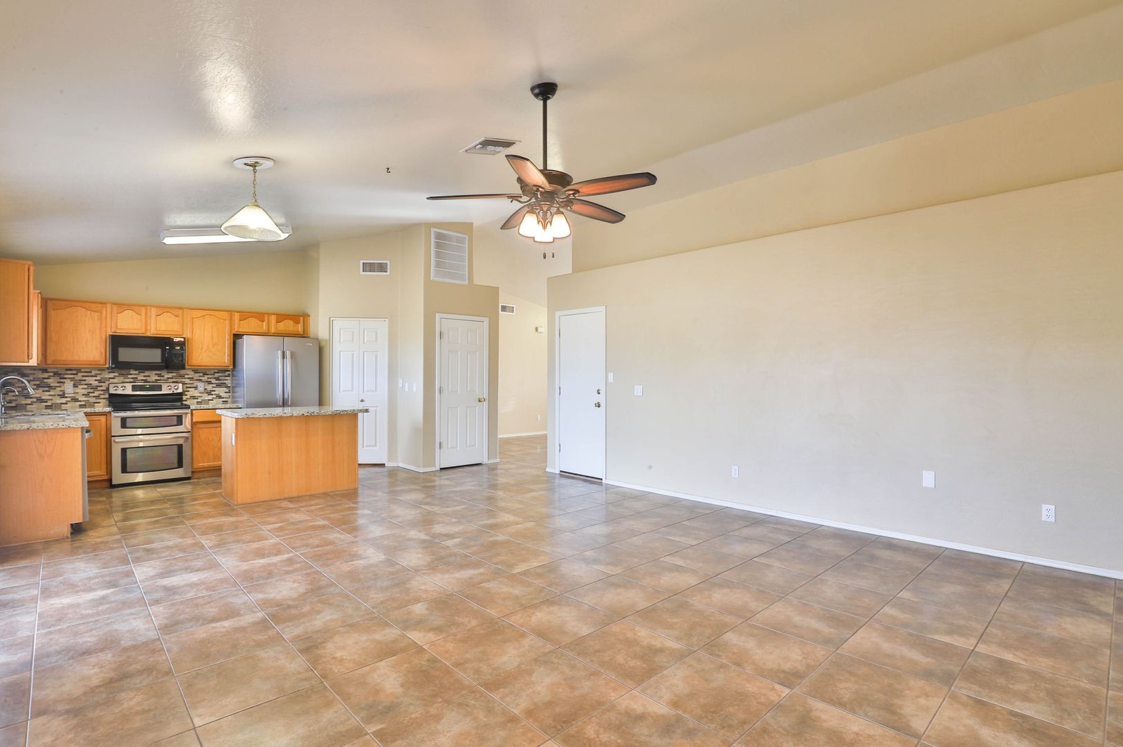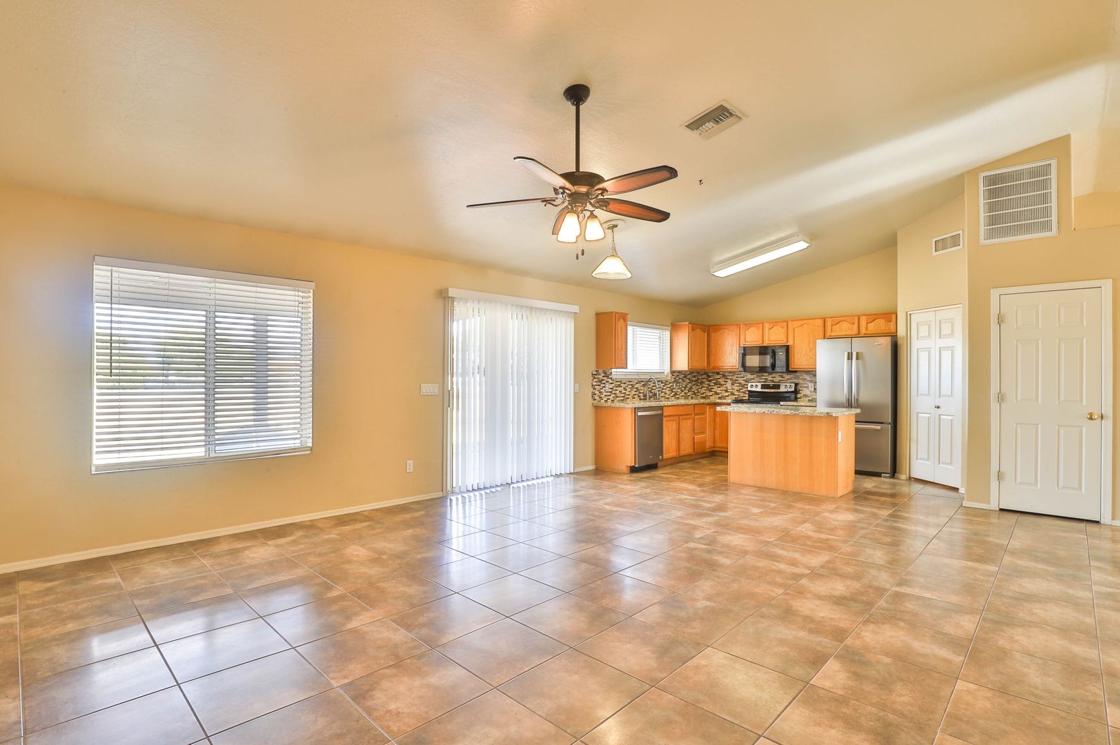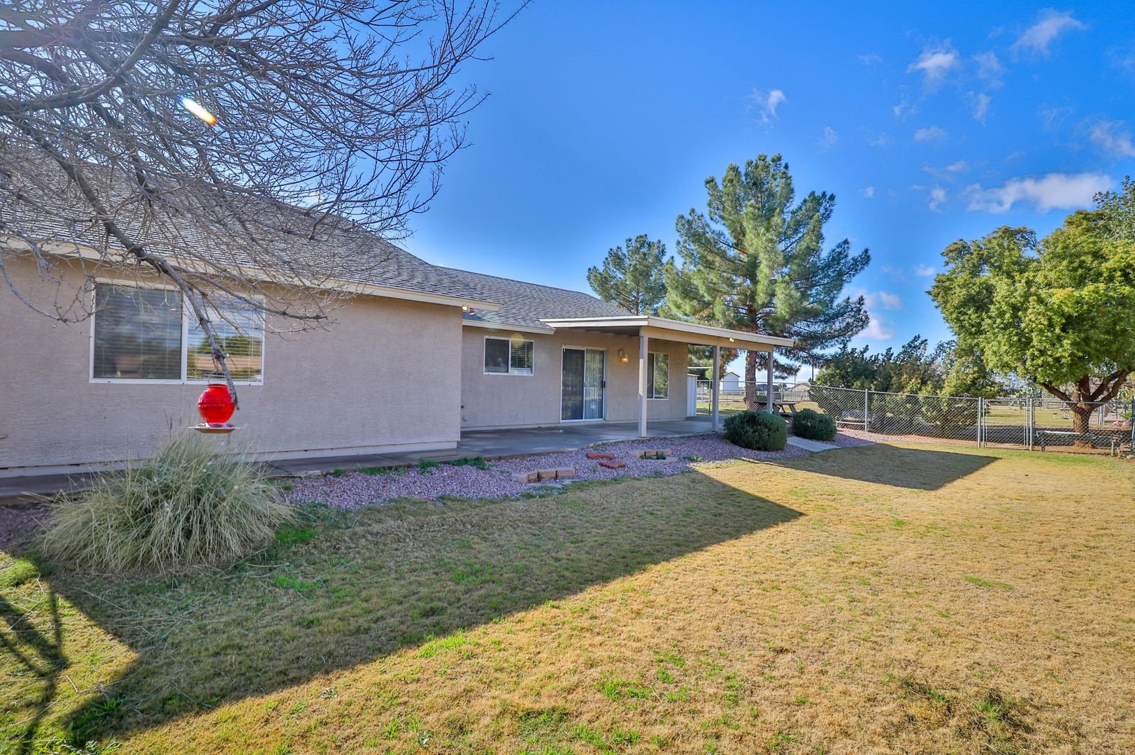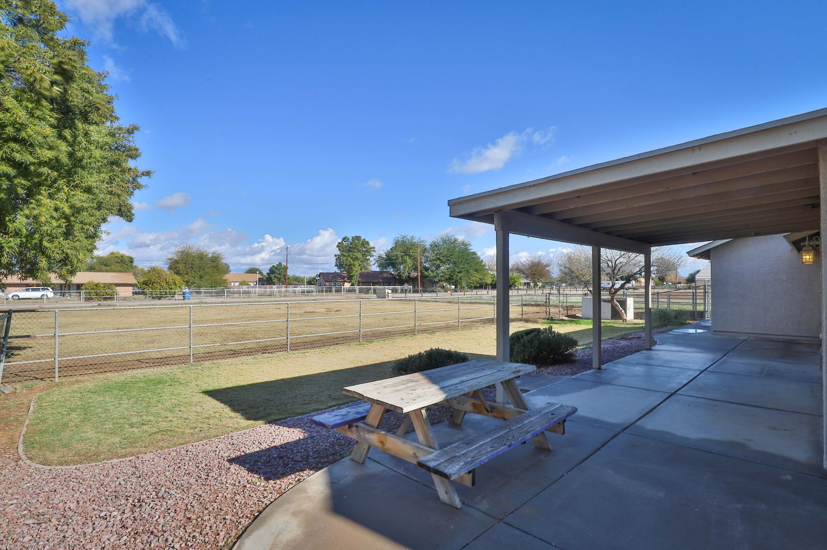 Come see this amazing 4 bedroom / 2 bathroom horse property with a three car garage! This home's interior features tile flooring, two-tone paint, ceiling fans, and vaulted ceilings. The kitchen comes complete with a pantry, breakfast bar, and stainless steel appliances including a stove/oven, refrigerator, dishwasher, and microwave! The master bedroom includes a walk-in closet and a private bathroom with a shower/tub combo. Enjoy sunny Arizona in your private fenced-in backyard with a covered patio, and desert and grass landscaping. This horse property includes acreage and horse stables. Also located near the loop 202 freeway. Contact us to see this home today!