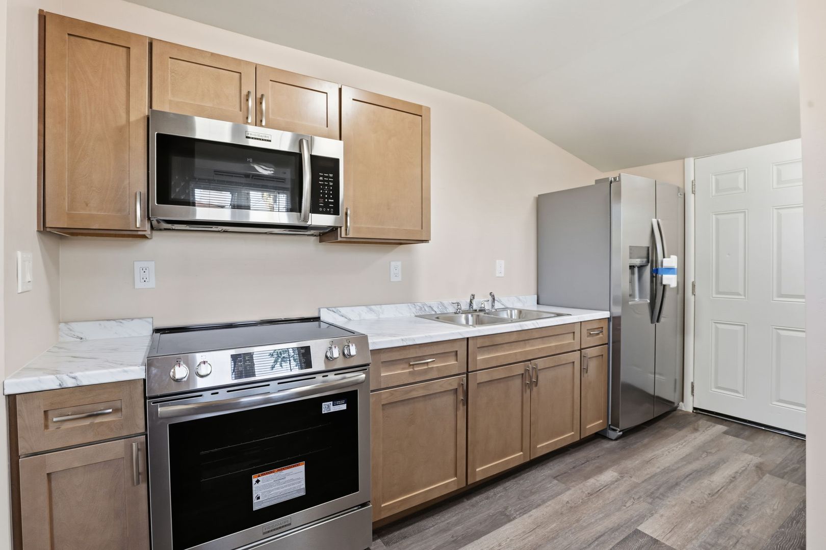Inside, you’ll find a completely updated interior featuring new cabinetry, fresh paint, and modern finishes throughout. The kitchen shines with brand-new appliances and smart design, while the in-home laundry area adds everyday ease. A new roof and professional landscape design ensure both curb appeal and peace of mind.