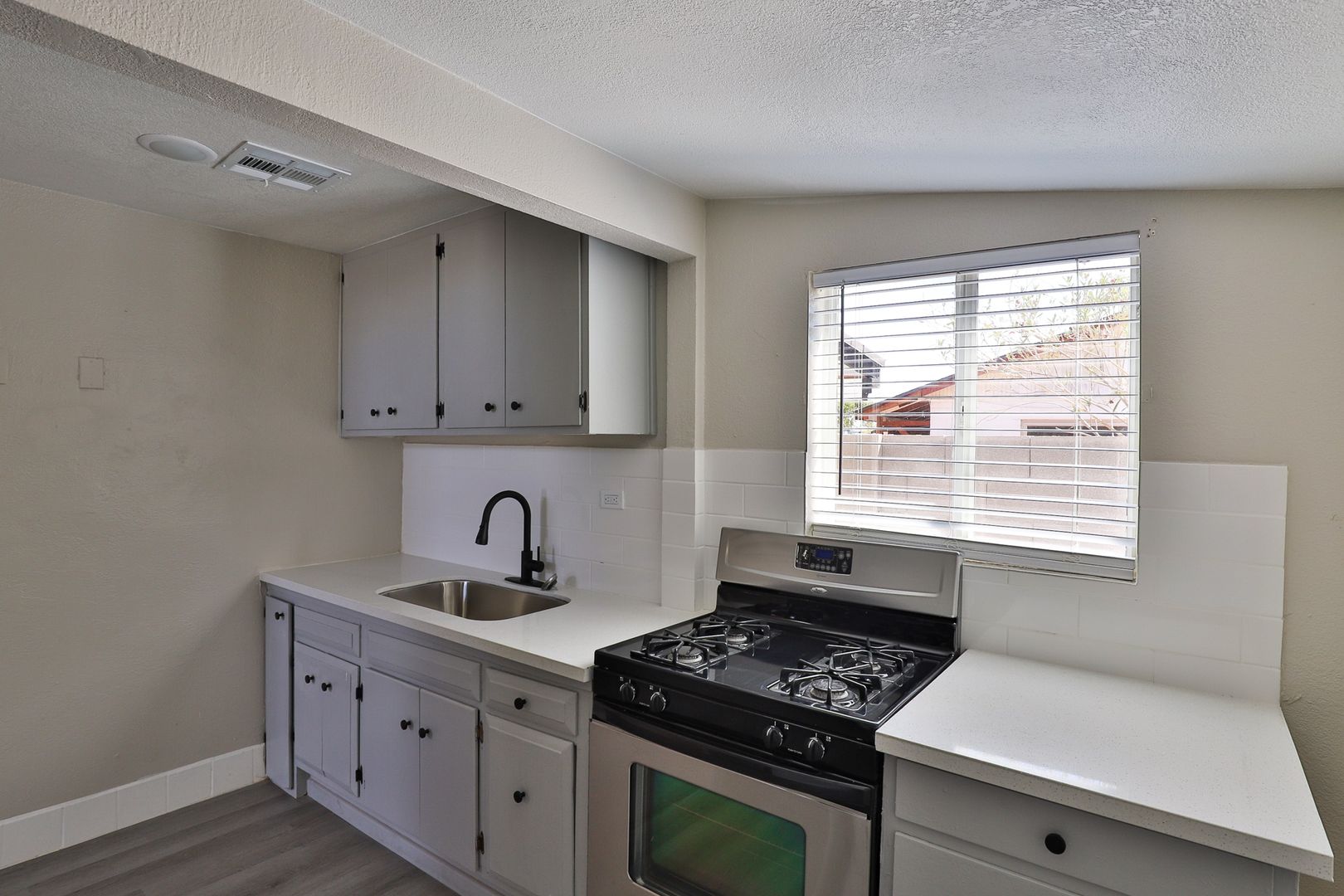 Do not miss this amazing 2 bedroom / 1 bathroom home in Phoenix! Enter and find new wood-like flooring with fresh two-tone paint, vaulted ceilings, and covered windows. The open kitchen comes complete with upgraded counters, a tile backsplash, and stainless steel appliances including a refrigerator and range oven! Contact us today!