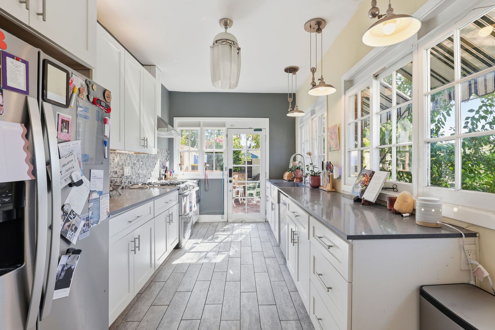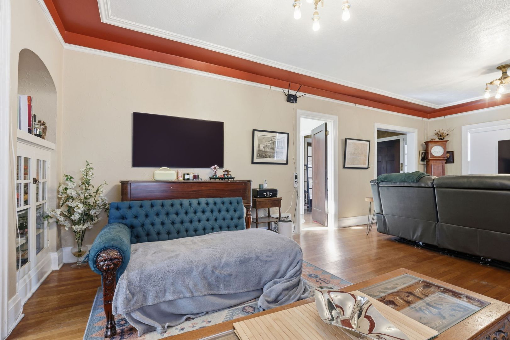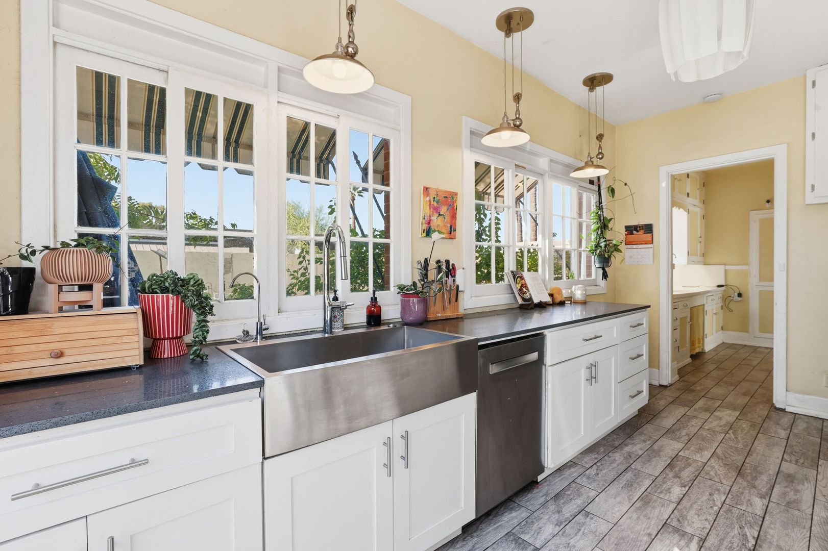 A rare opportunity, the Historic Harry J. Felch House. The 2,967 sq ft main residence offers 5 bedrooms and 3 bathrooms. It is situated on a 14,000 sq ft lot with a pool, and is complemented by an 800 sq ft carriage house, with 2-car garage and EV charging! Preserved original details include etched faux-finished plaster in the formal foyer, period light fixtures including right in the entry room, unpainted paneled doors with glass knobs, built-in cabinetry in living room and parlor, vintage bath tile and fixtures, French doors, oak floors, a grand staircase with landing, abundant natural light, and a basement.