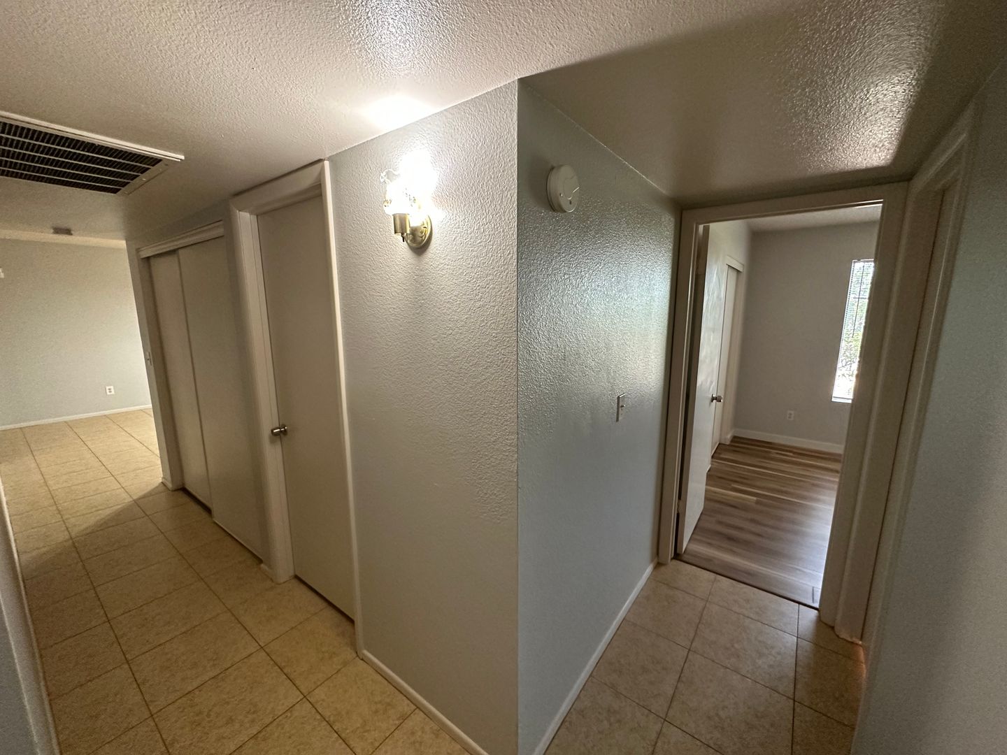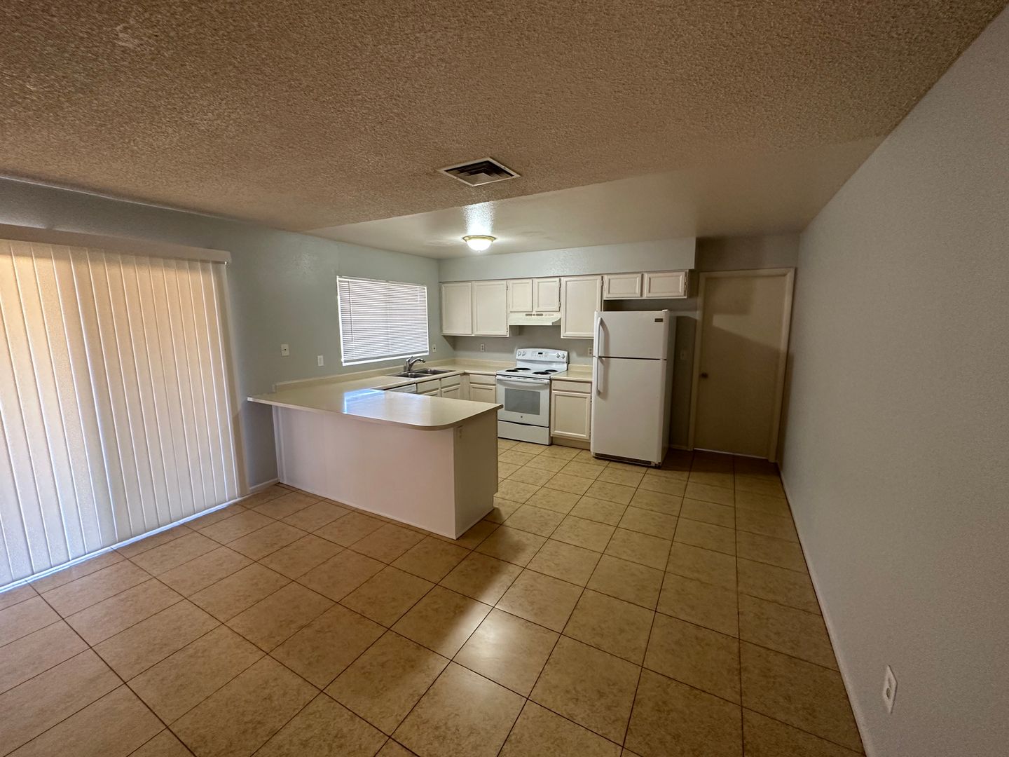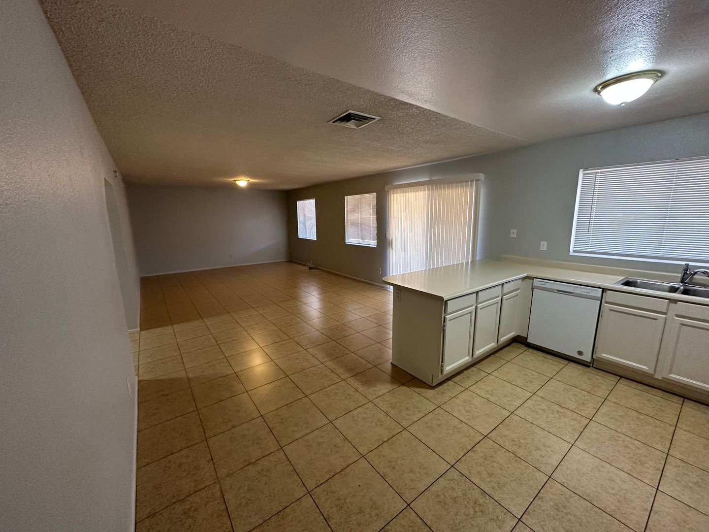 Available now! This great home has a 2-car carport and a nice floor plan. The kitchen opens to the dining area/family room and has a peninsula, great for entertaining or a place for homework. There is also a separate living room off the main entrance. Easy maintainence tile floors throughout the main areas and vinyl plank floors in all the bedrooms. Two tone paint, window blinds throughout and ceiling fans in the living room and Primary bedroom. The hall bathroom has a nice white surround in the tub area while the Primary bathroom has a nice size shower with sliding glass doors. Laundry room with hook ups. The huge backyard has an RV gate and an extra-long covered patio which your family and friends can enjoy throughout the year. Please call 602-680-5520 to answer screening questions and obtain a code for a self guided tour. Come view this fantastic home today!